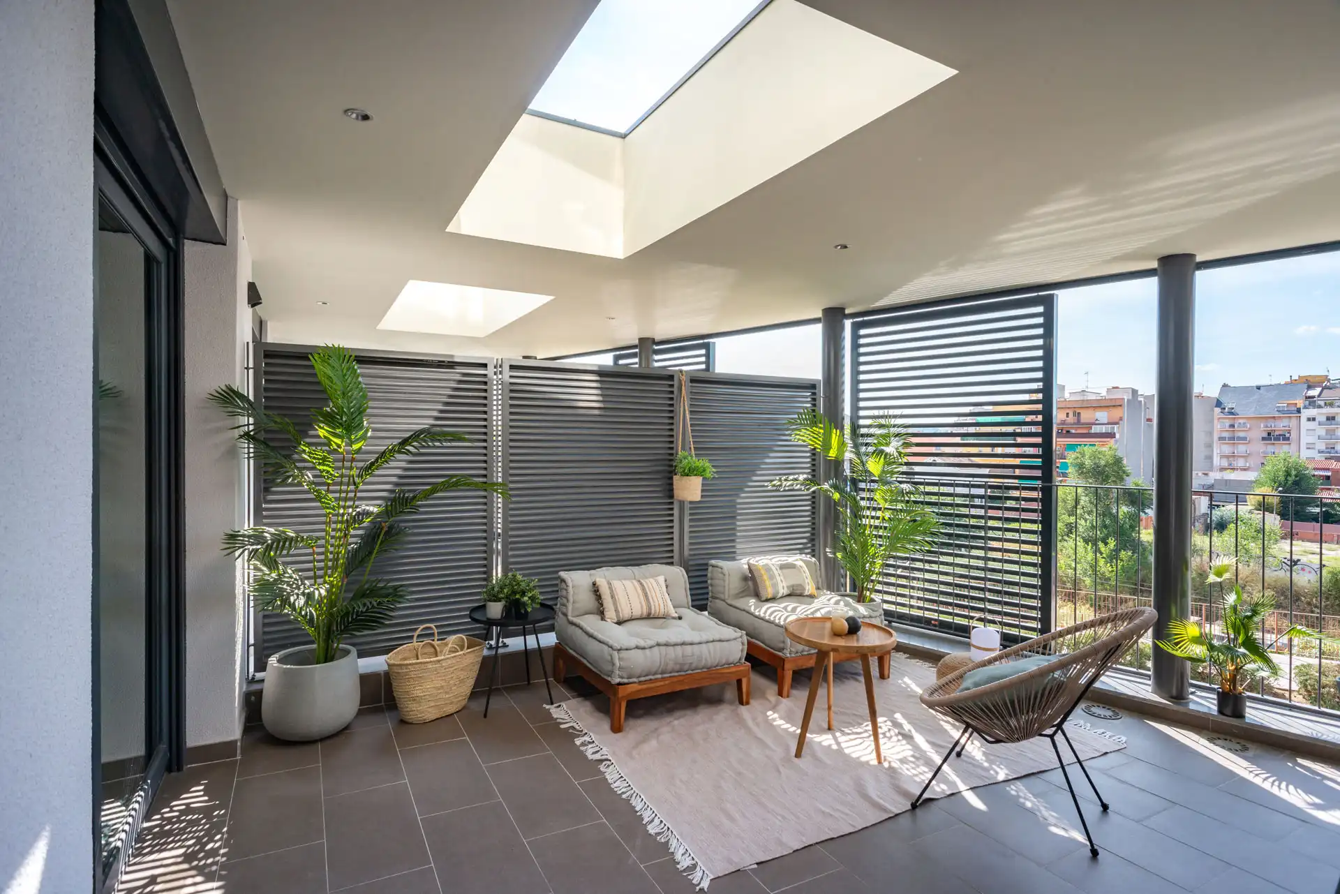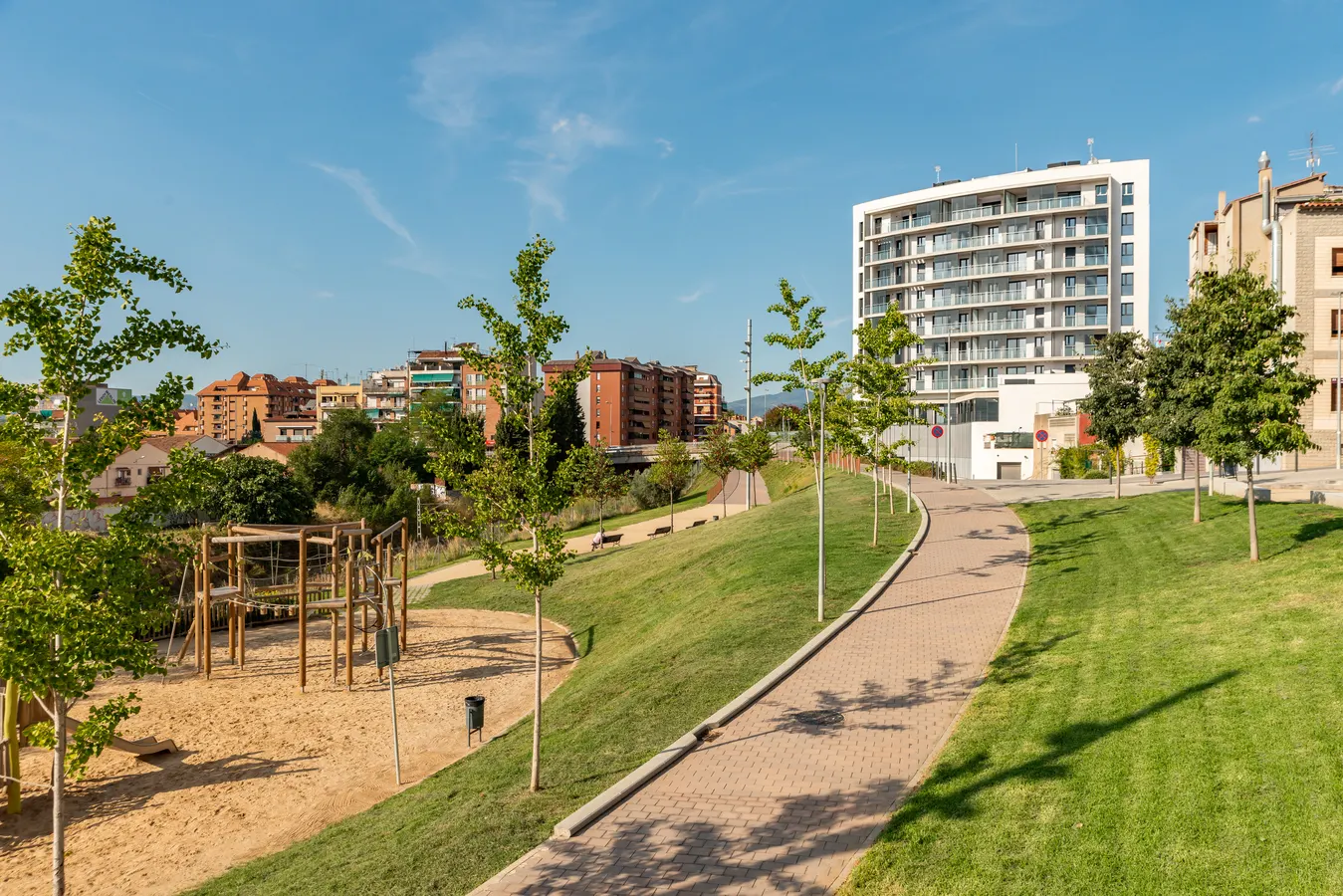La promoción de viviendas cuenta con generosas terrazas para disfrutar de fantásticas vistas al parque con orientación sur, gracias a su ubicación en la zona alta de Granollers. Son viviendas exteriores con ventilación cruzada, ya que la fachada de cada una de ellas está orientada por un lado a la calle y por otro, al parque.
