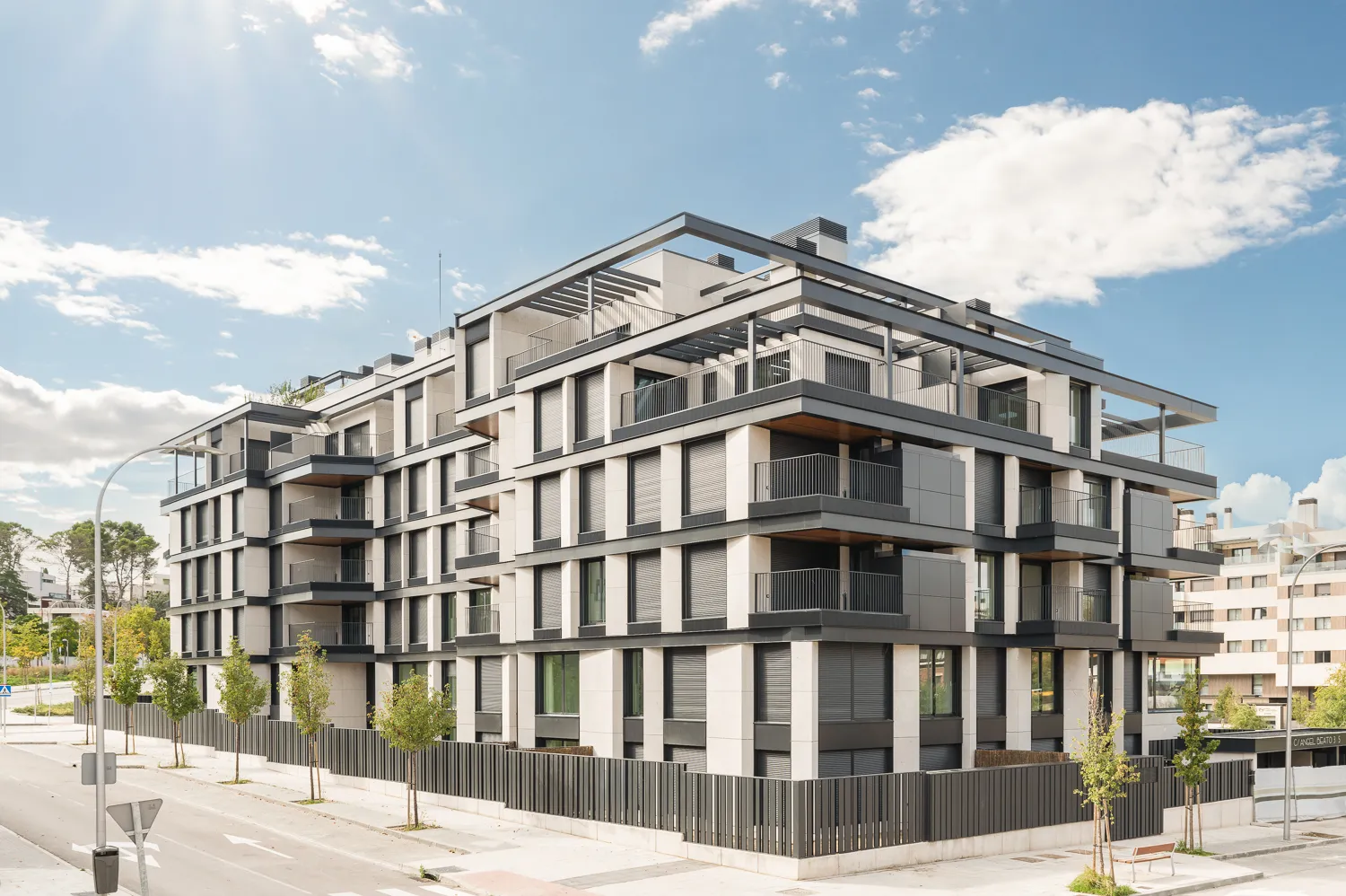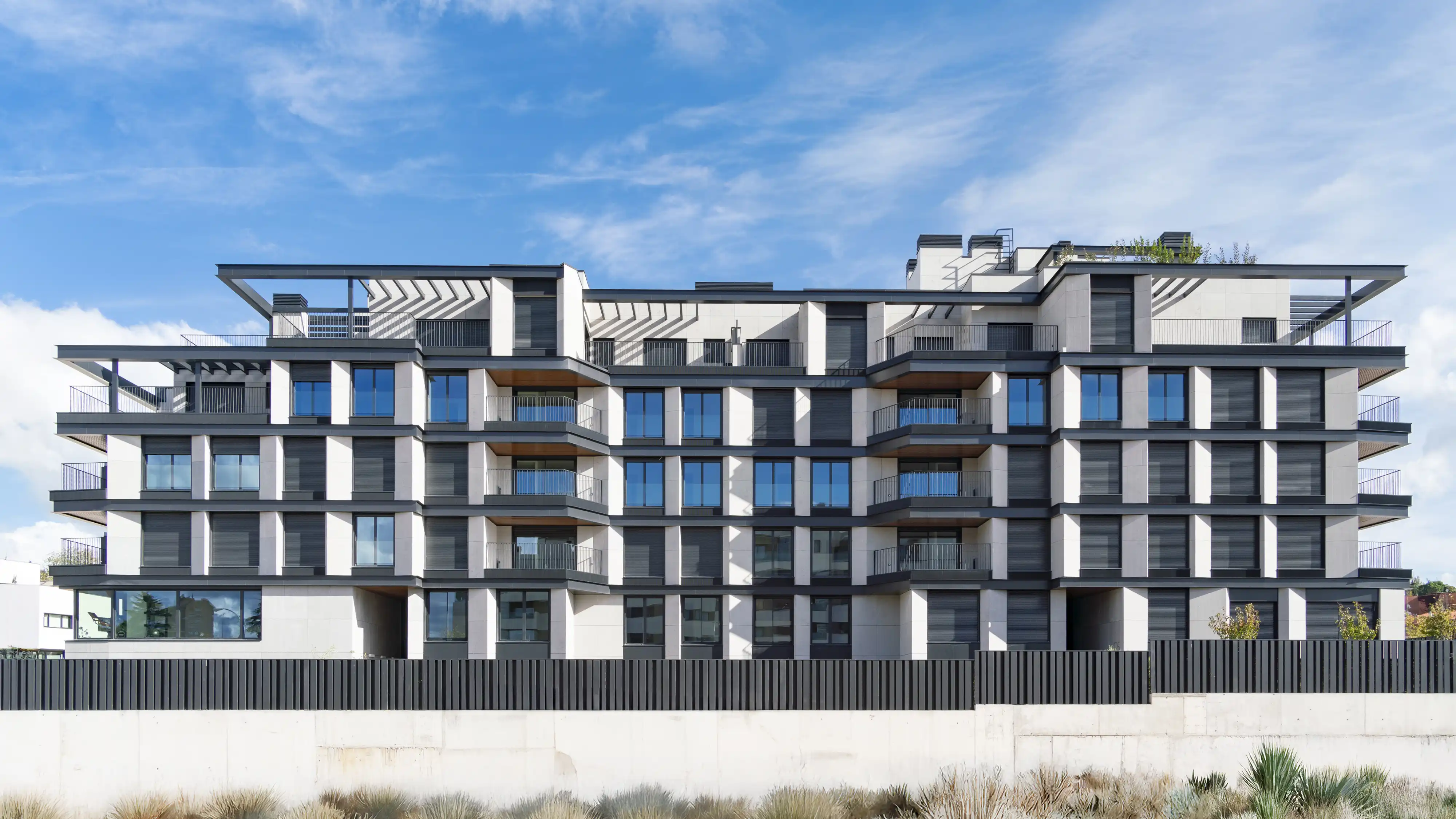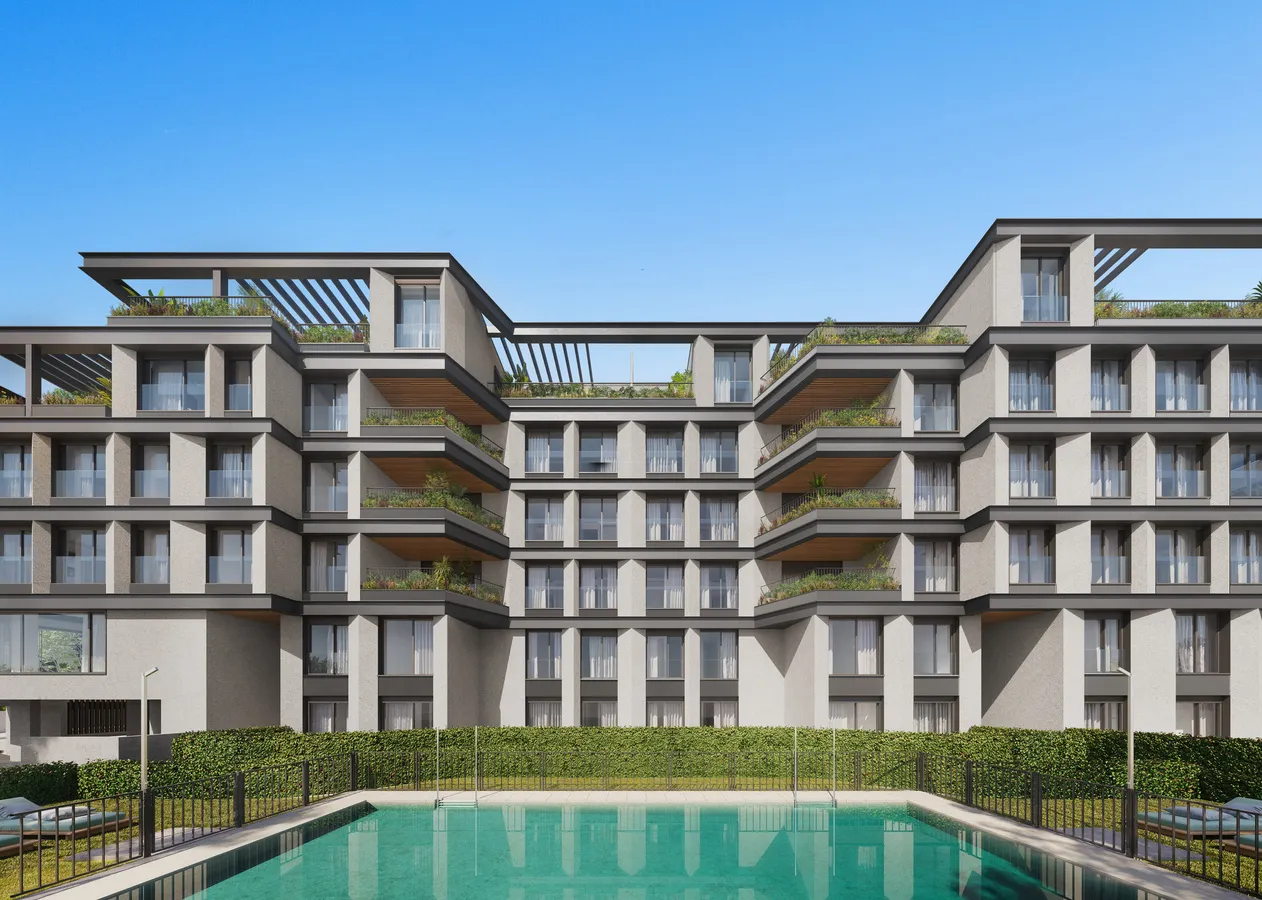 Nuevo Puerta de Hierro is a new project designed with taste, style and passion for things well done by the Martín de Lucio architecture studio. It is made up of 49 Homes that give prominence to the large windows and terraces, playing with the orientations to guarantee natural light and energy efficiency. Typologies of 1, 2 and 3 bedrooms, on the ground floor with a garden that will have access to the community green areas (not all the ground floors have direct access to community areas), flats with a terrace and spectacular penthouses with large private terraces. Memory of Qualities with the best materials, beautiful and durable, applied to a contemporary and timeless design. Open spaces, natural finishes, colors and unique details, which provide warmth and a cozy feeling to the whole.